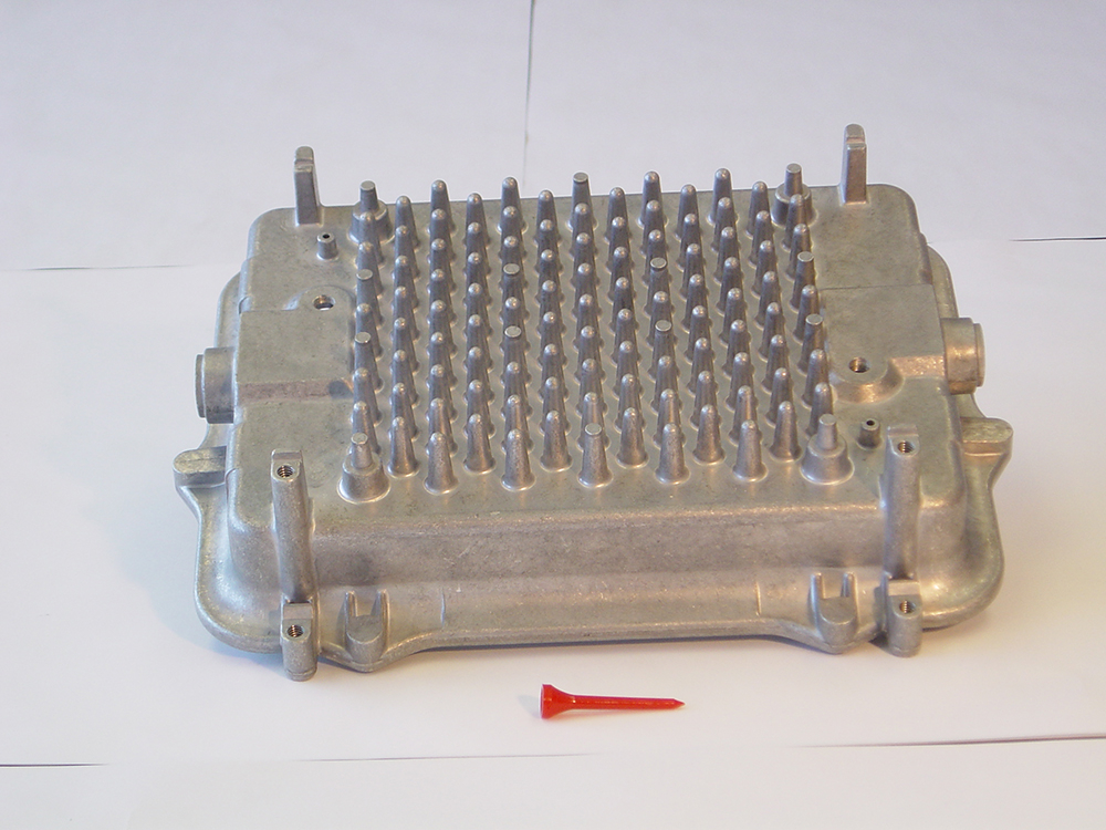 Common casting wall thickness is .080 in., but .050 in. or less is possible depending on feature geometry. Casting capabilities include thin walls, intricate geometry with multiple slides or cores, zero draft & complex parting lines.